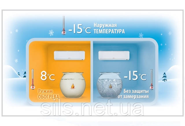 Система керування кондиціонерів може підтримувати в приміщенні температуру повітря +8 °C, щоб не сильно охолоджувалися стіни та не замерзав водогін. Це актуально використовувати для дачі, гаражів або якщо Ви їдете у відпустку взимку, і Вам не потрібен постійний прогрівання приміщення до комфортного температуры. Водночас кондиціонер споживає менше електроенергії, оскільки перепад температур вулиця/поміщення зменшується.