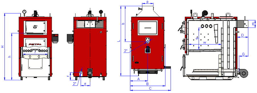 - Конструкція котла дає змогу спалювати різні види палива (пелети, вугілля, дерево, брикети, тирси, відходи деревини).